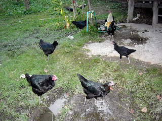 One sign of normality, about the only sign really - chickens running around doing what chickens do.